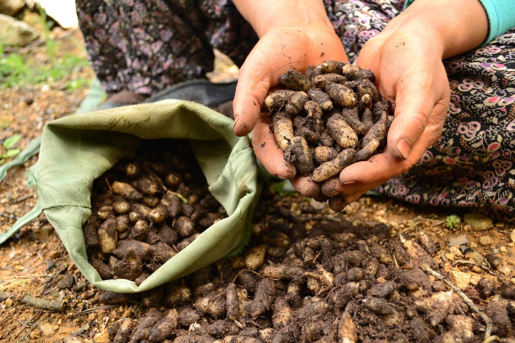 Yumrular, eleklerin üzerinde veya tıpkı bamya gibi iplere dizilerek kurutulur. Bu işlemi yapan köylüler de vardır. (Ancak üretim ağının pazar kısmını elinde bulunduran üreticiler, kurutma ve öğütme işlemini yaparak satışını sağladıkları için köylüden az işlemden geçmiş şekilde bu yumruları toplayıp bu ürüne katma değeri kendileri katıyorlar)